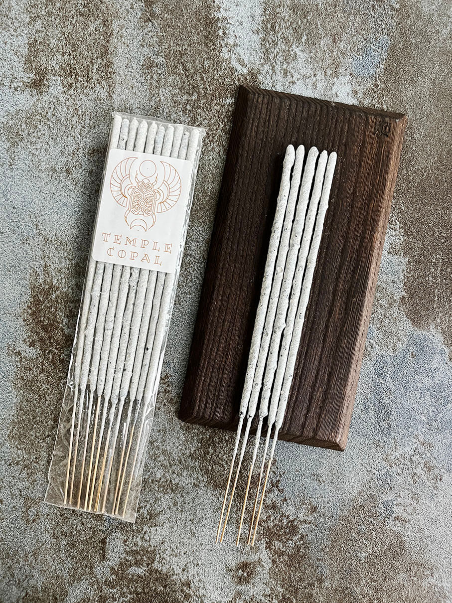 Copal has been used in rituals, celebrations, and offerings tracing back thousands of years to sacred sites and the temples of Mexico and Central America. In honor of these ancient cultures TEMPLE COPAL invites you to calm and connect with the divine, offering 100% Pure Sacred WHITE Copal resin incense sticks.