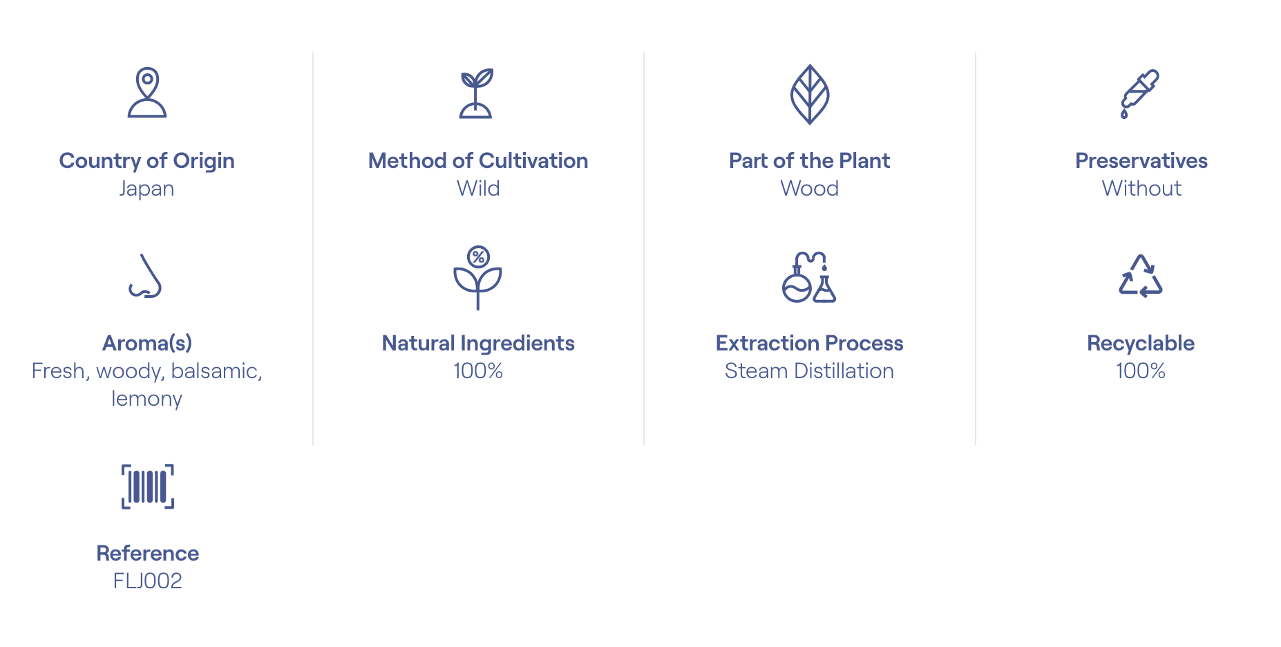 The Hinoki Essential Oil (Chamaecyparis obtusa) is 100% pure and natural. It is obtained by steam distillation of the wood. This wild harvested plant come from Japan.