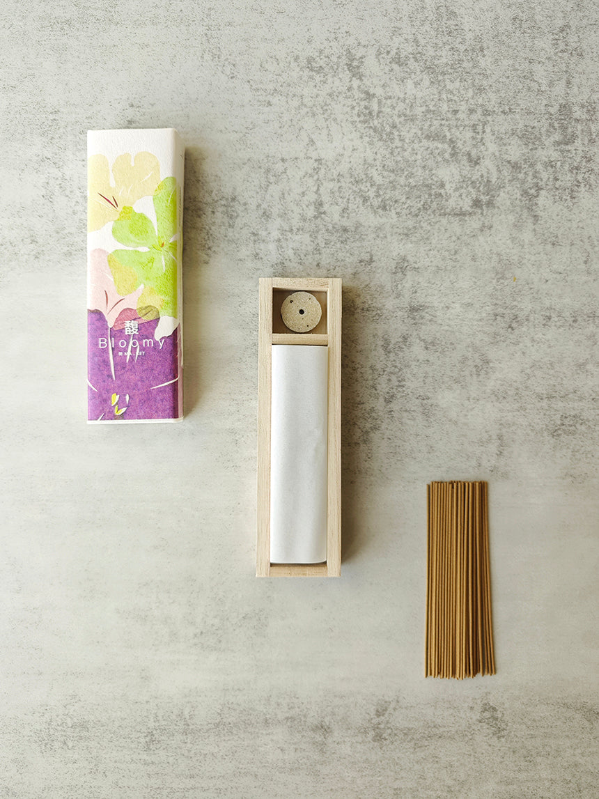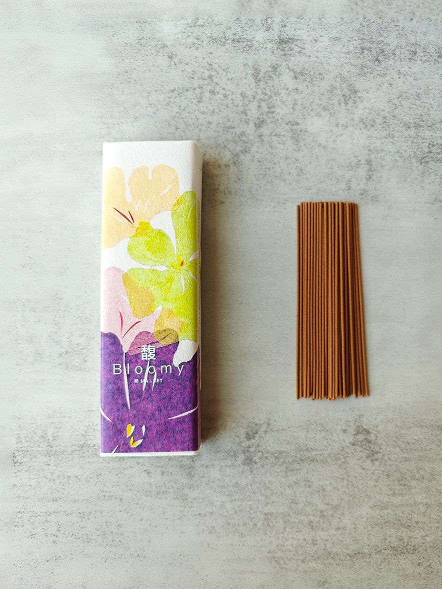 This incense stick uses different fragrance materials such as jasmine, agarwood, benzoin, and juniper to create a scene of flowers blooming atmosphere under the sun. The floral fragrance is intertwined with the softness of benzoin and the calmness of agarwood and juniper wood. It brings the beauty of nature to people with the feeling of sweetness and comfort.