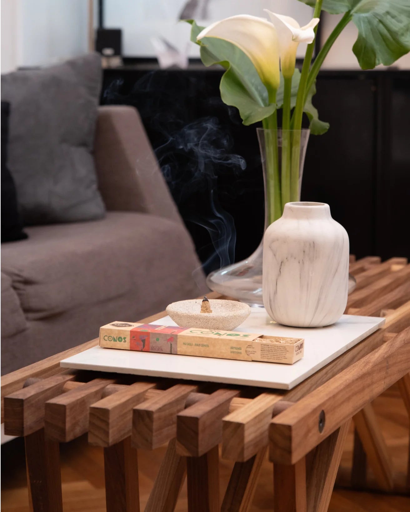 ・After igniting the tip of incense, extinguish the flame and let the smoke smoulder.