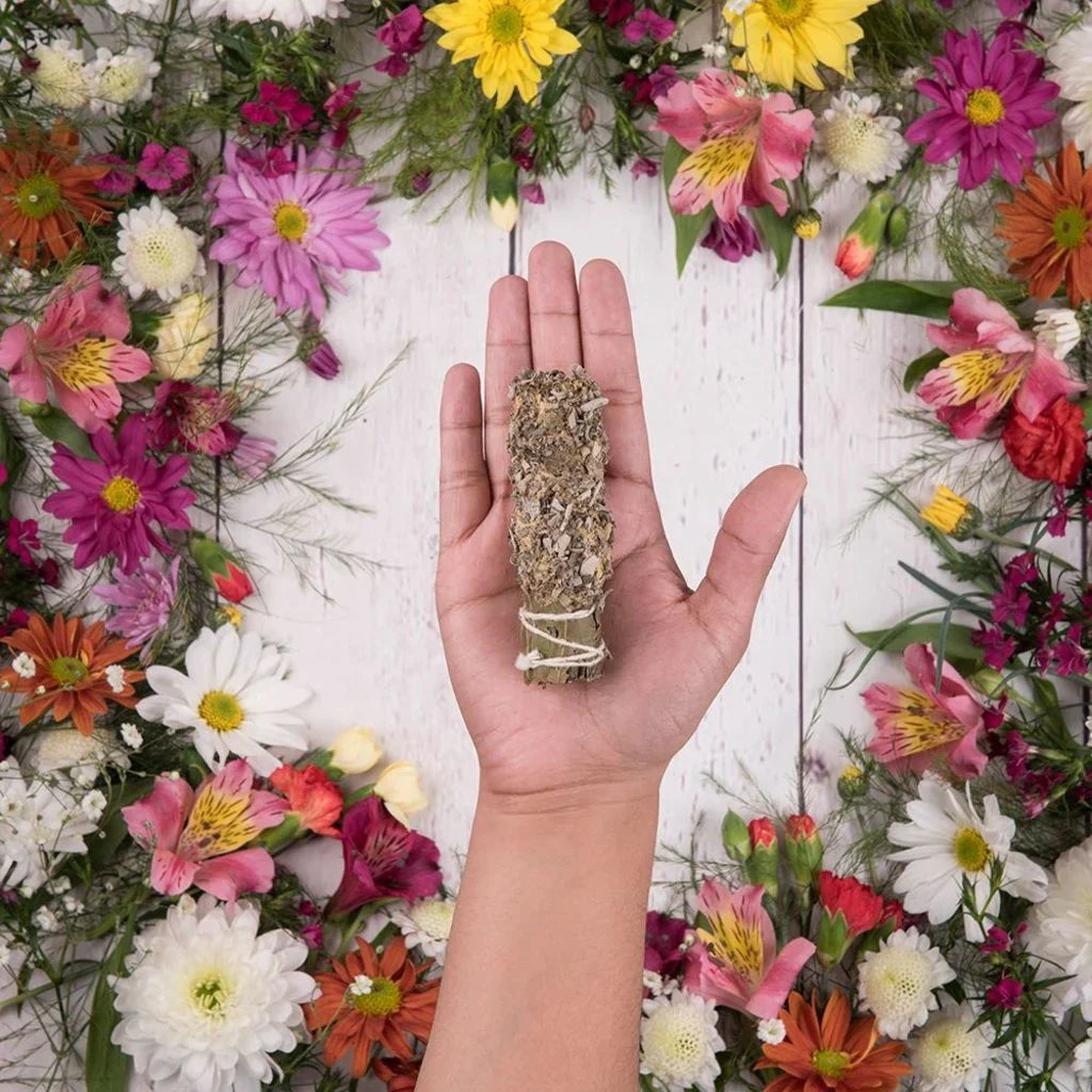 Center bundle made of cedar, bay leaves, and eucalyptus for smudging