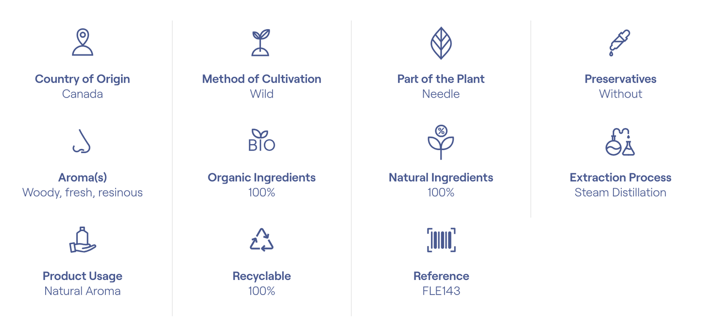 香脂冷杉有機精油 (Abies balsamea) 經有機認證,100% 純天然。它是通過針的水蒸氣蒸餾而獲得的。這種野生收穫植物來自加拿大。